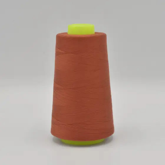 Fil surjeteuse 100 % polyester, teinture en masse coloris Terra — pour des surjets résistants et soignés.