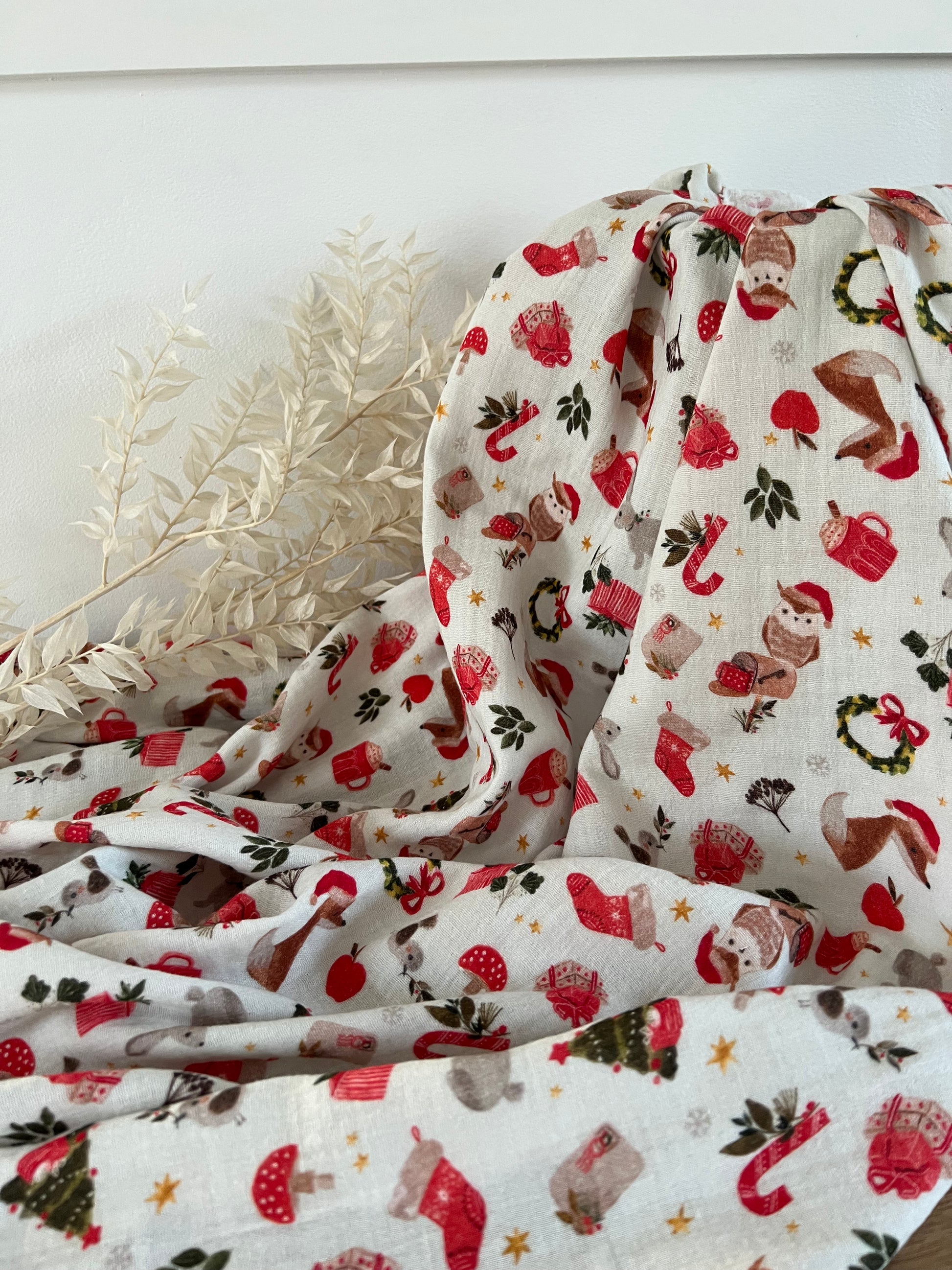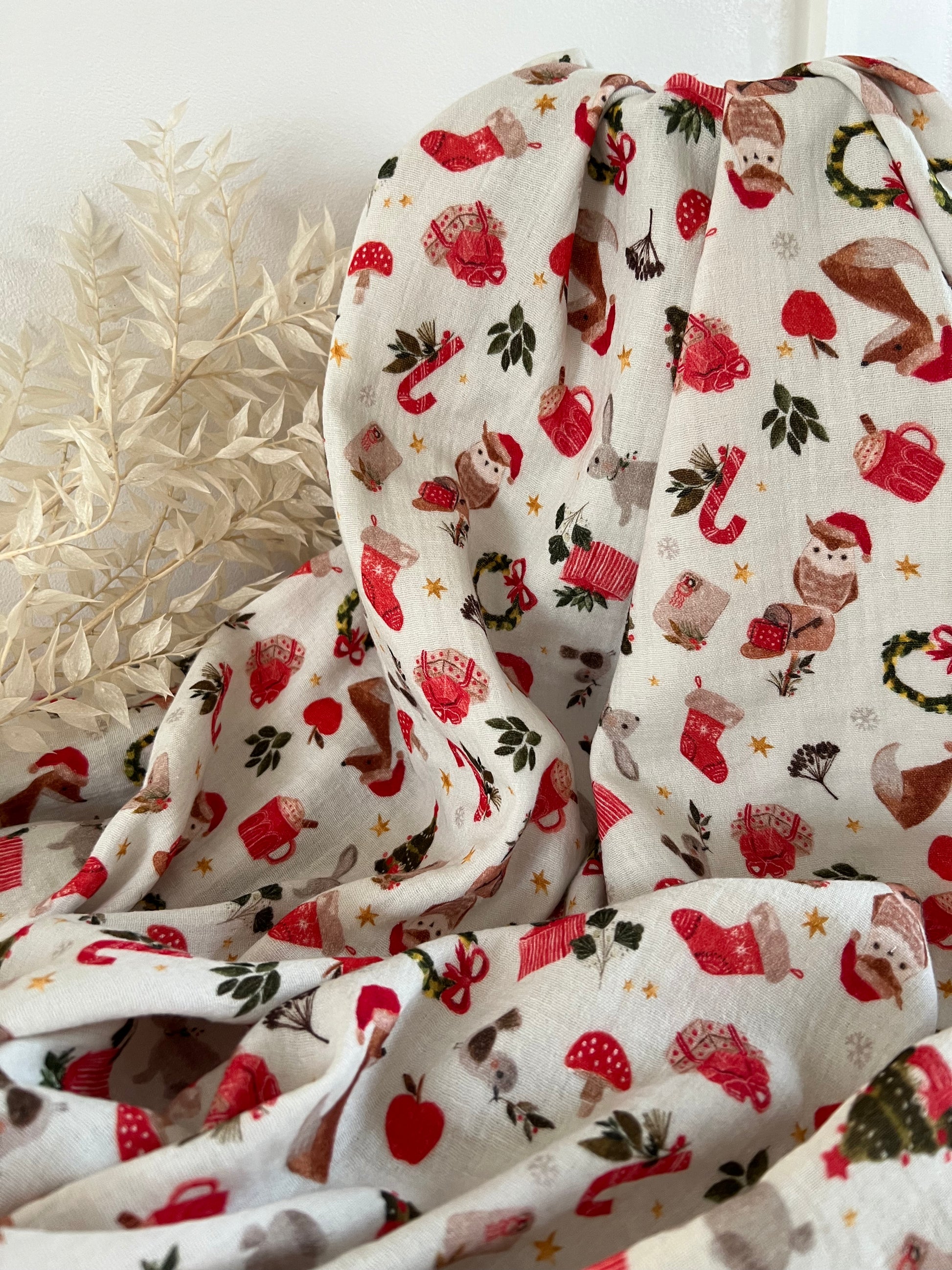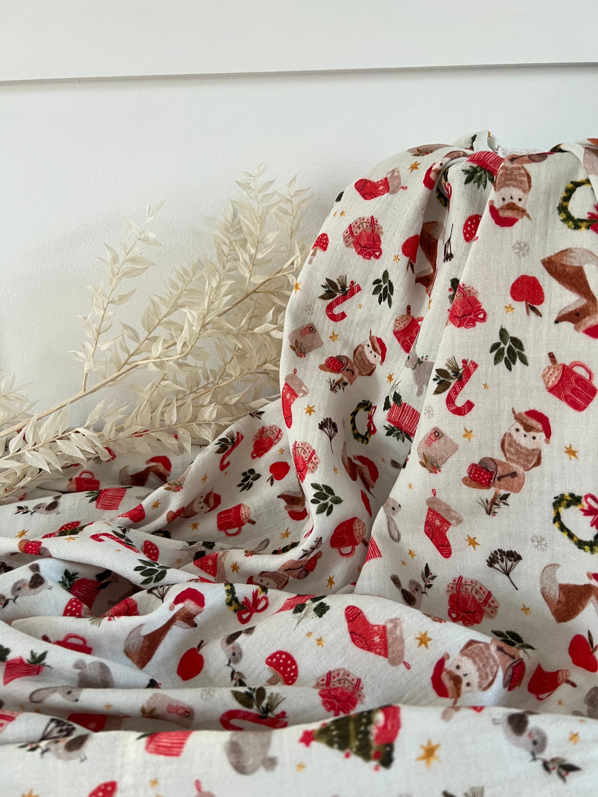 Double Gaze Imprimée – GOUPIX Ecru / Rouge – vendu par demi-mètre