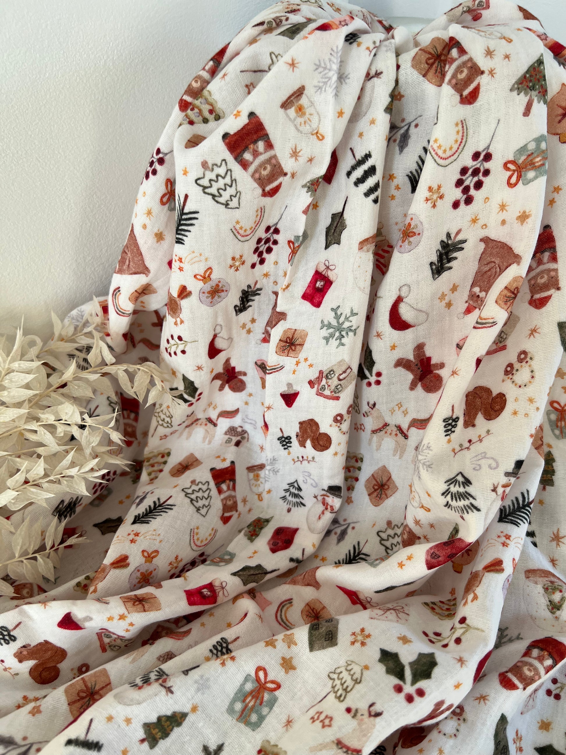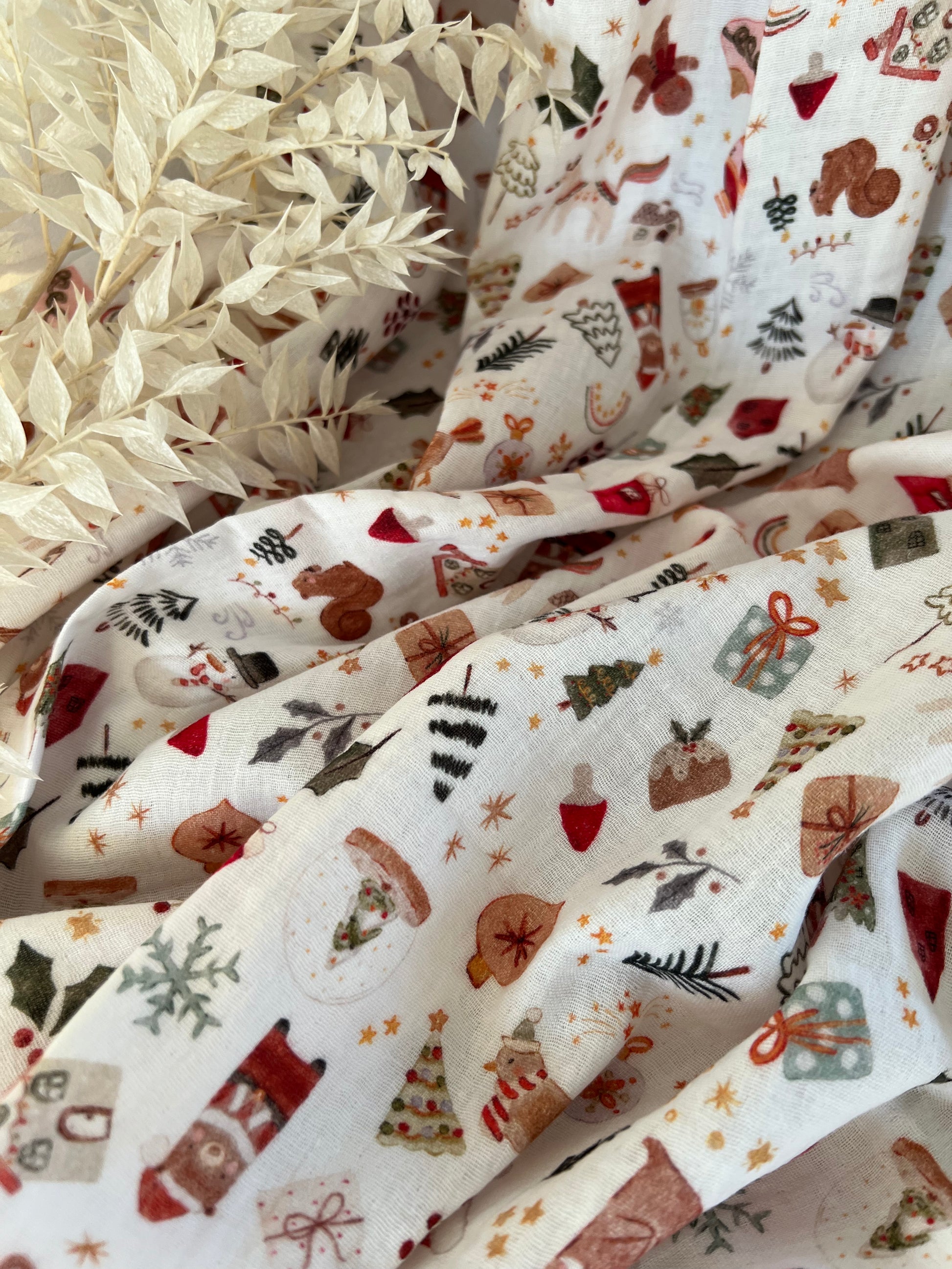 Double Gaze Imprimée – VISBY Blanc / Rouge – vendu par demi-mètre