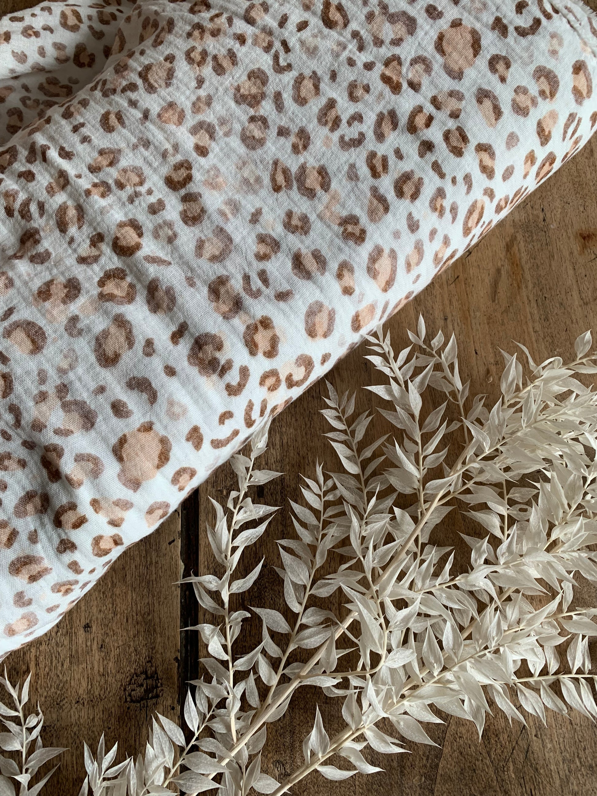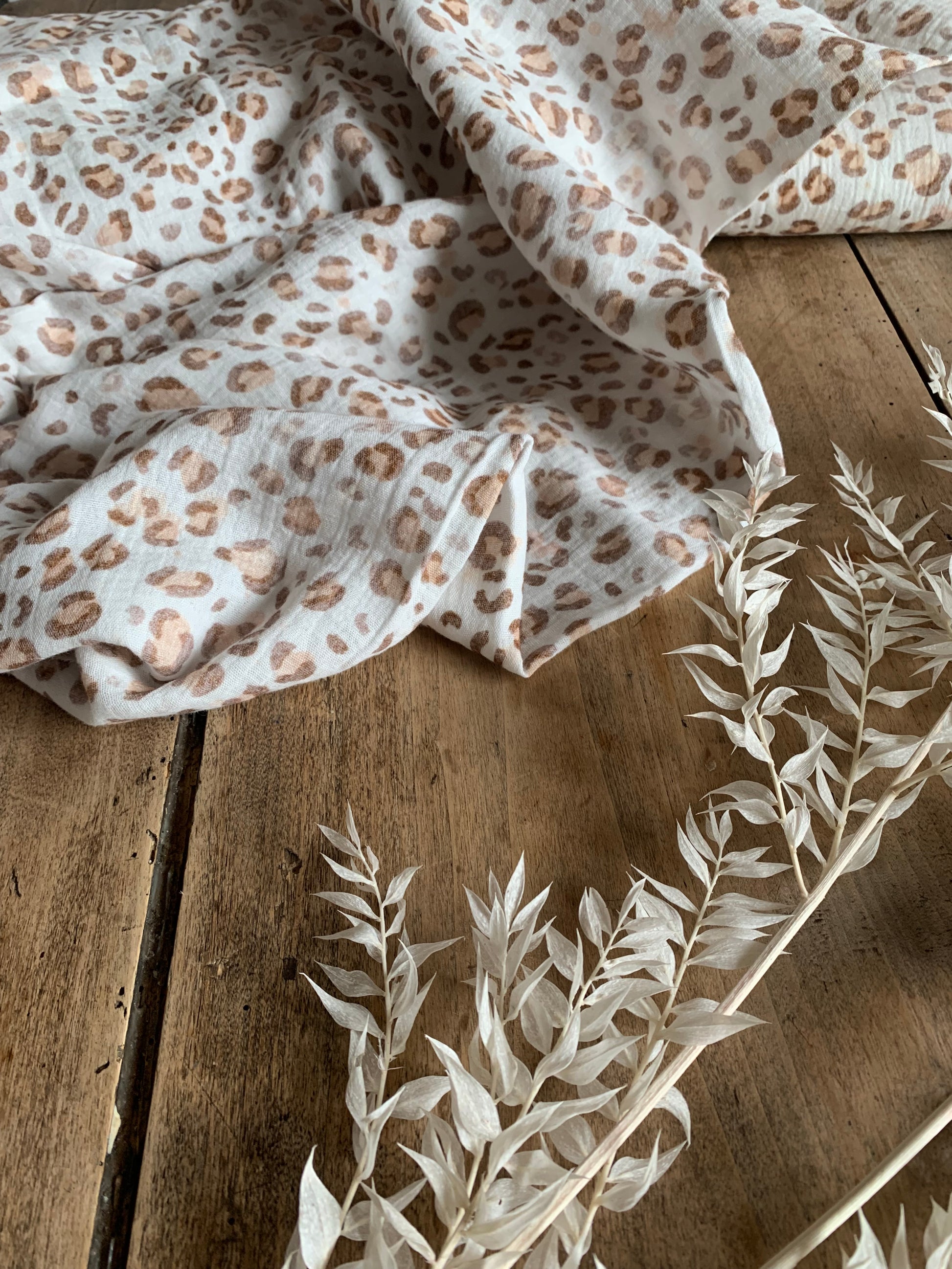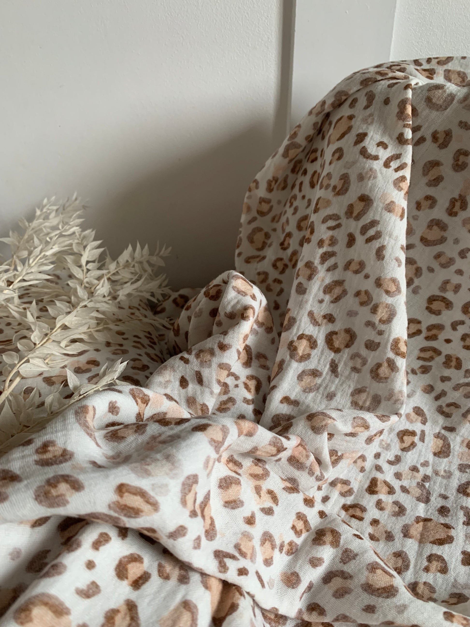 Un tissu double gaze doux et léger, sublimé par un imprimé panthère moderne et élégant, idéal pour des créations audacieuses.