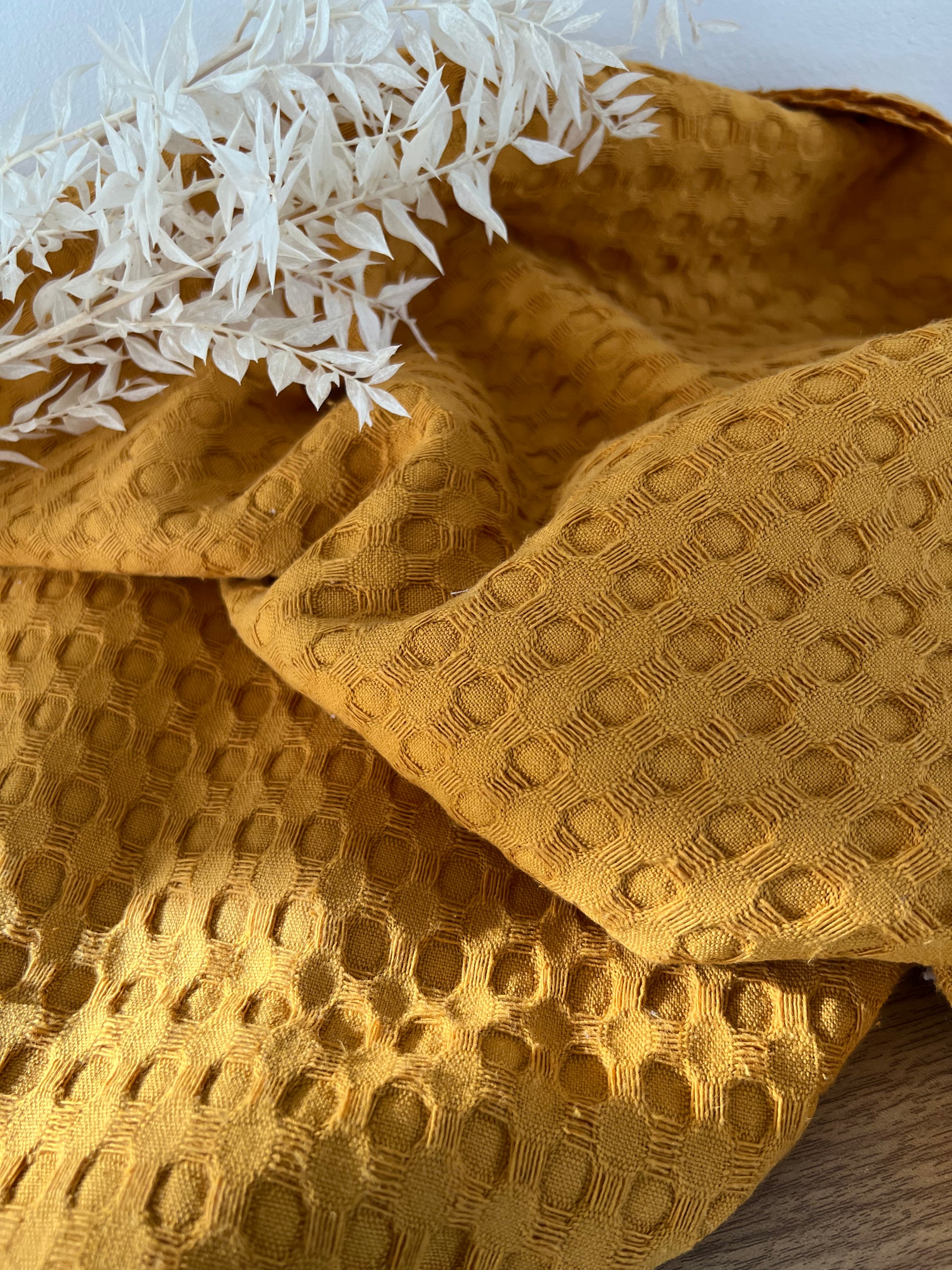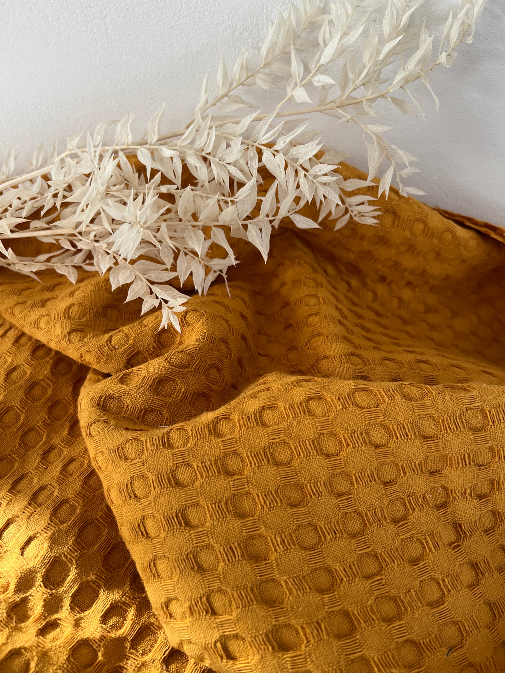 Ce gros coton nid d’abeille moutarde séduit par son relief gaufré et sa teinte chaleureuse. À la fois absorbant et doux, il est parfait pour la confection de serviettes, plaids, coussins, accessoires pour bébé ou même vêtements confortables. Son style texturé apporte un charme artisanal à toutes vos créations.