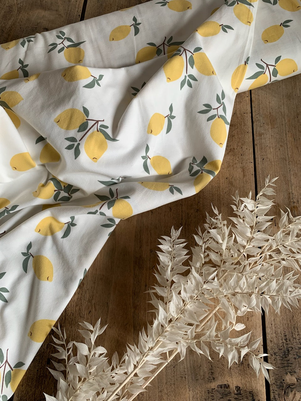 Un jersey fruité, doux et vitaminé, parfait pour réaliser des vêtements estivaux pour enfants : t-shirts, robes légères, bavoirs colorés ou leggings pleins de pep’s. Idéal pour ajouter une touche de fraîcheur à la garde-robe cousue main !