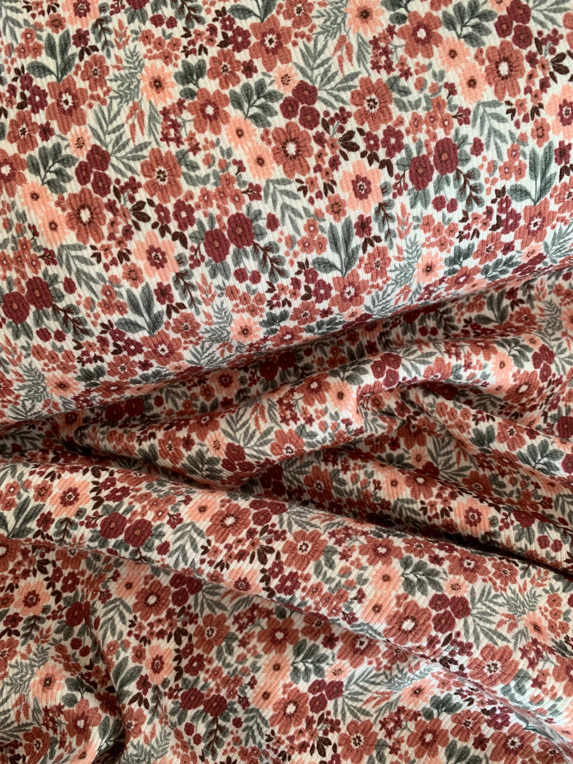Un tissu fin et extensible, parfait pour des vêtements confortables et élégants au motif nature.