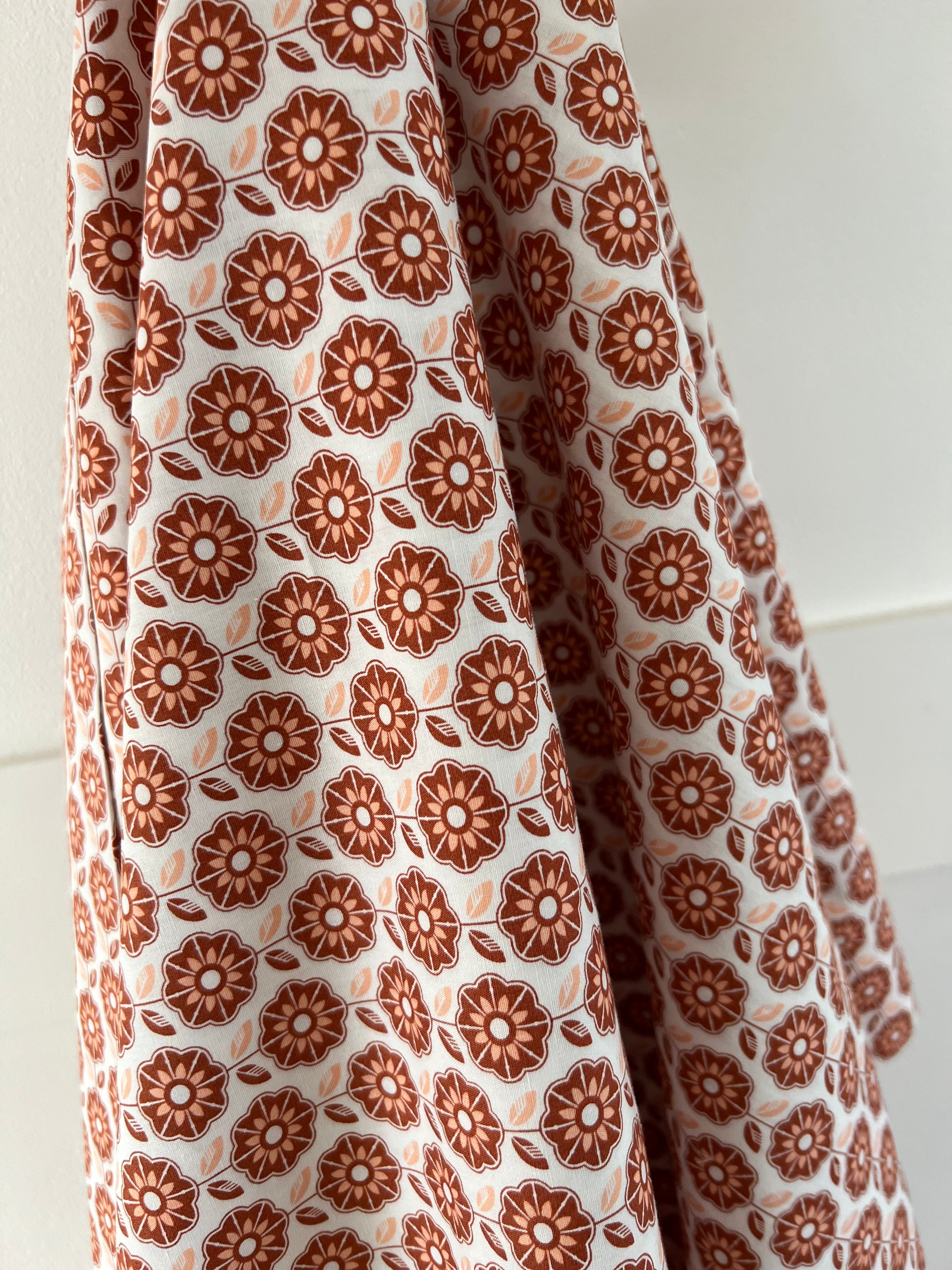 Cette popeline rétro pleine de caractère, aux formes géométriques vintage, est parfait pour des créations mode ou déco au style affirmé : chemises, robes structurées, doublures d’accessoires, sacs ou coussins graphiques.
