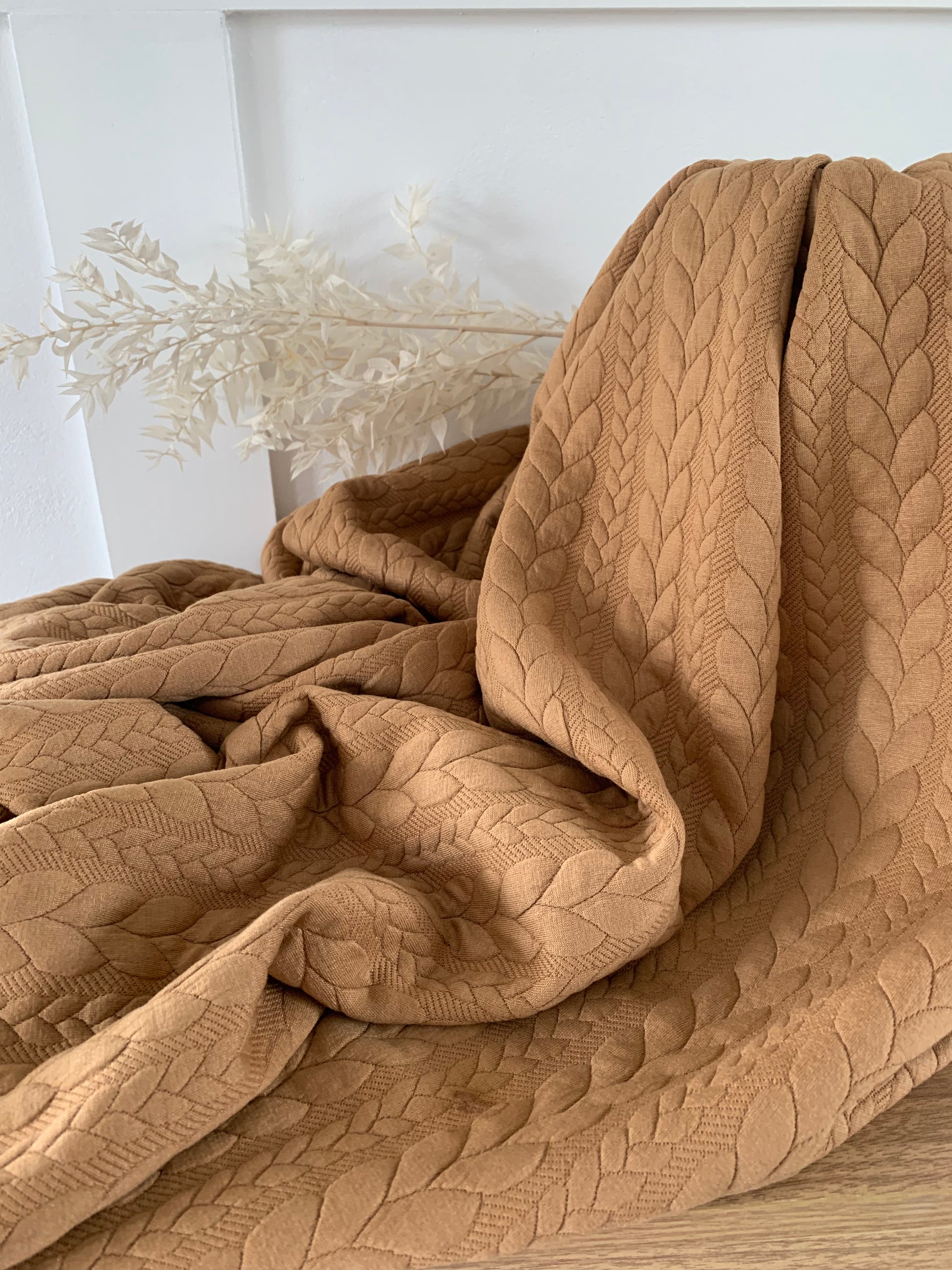Tissu Jersey Matelassé à Motif Torsade Chameau